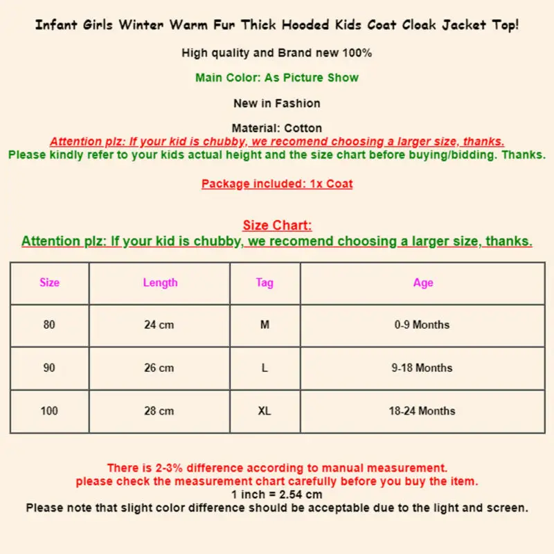 Buy New born Baby Girl Hooded Cloak Jacket Outwear Kid Warm Coat Princess Top Clothes Right Here and Right Now Just for USD US $6.53, Price will be rise up at any time without notification and I cant guaranted that the stock is still available tommorow or next hour. So Please Save It Now!